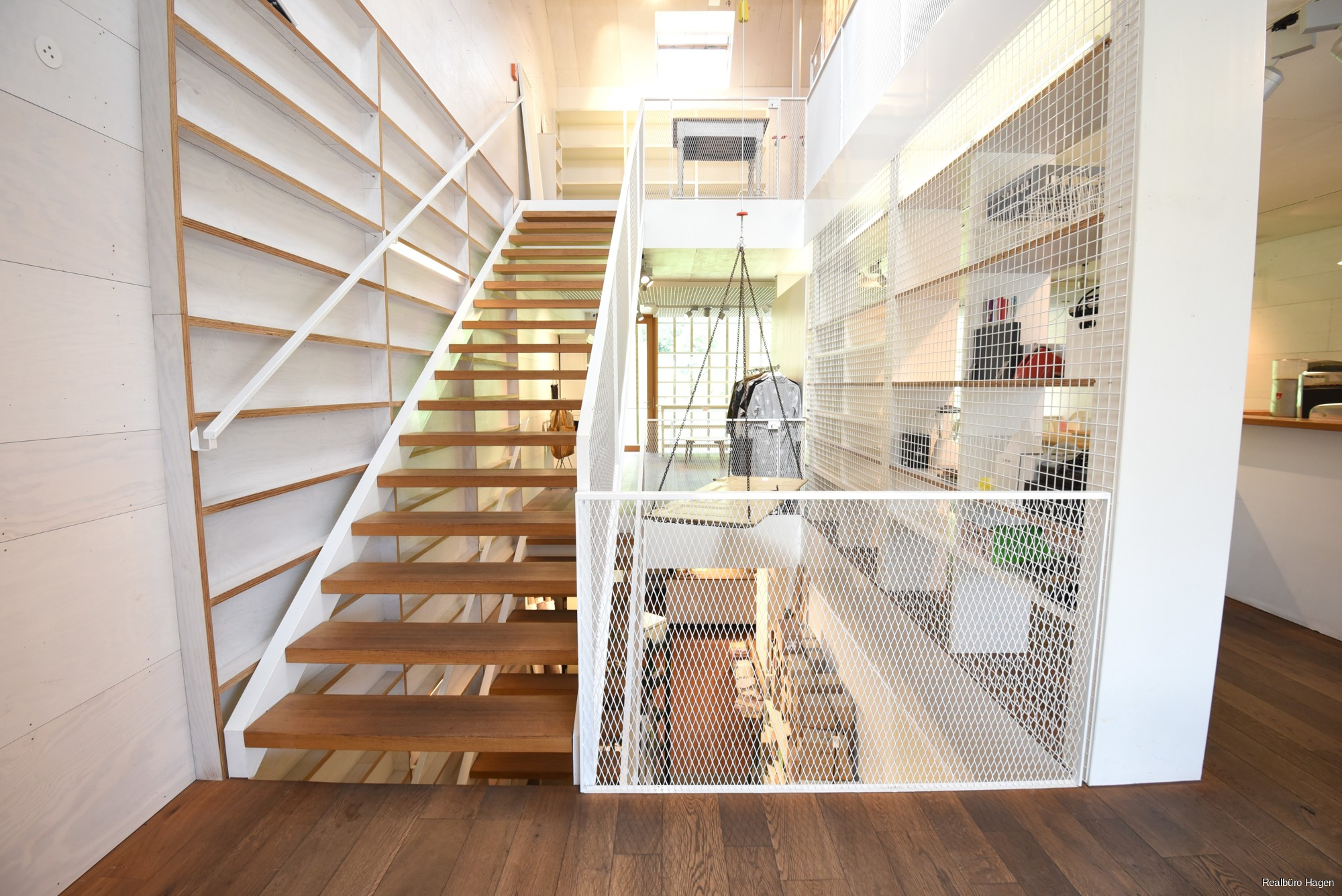 Übersichtlichkeit und Orientierung und die Mehrgeschossigkeit des Geschäftslokals ermöglicht eine besondere Raumerfahrung. Das Volumen und die Offenheit im Gebäude werden erlebbar.